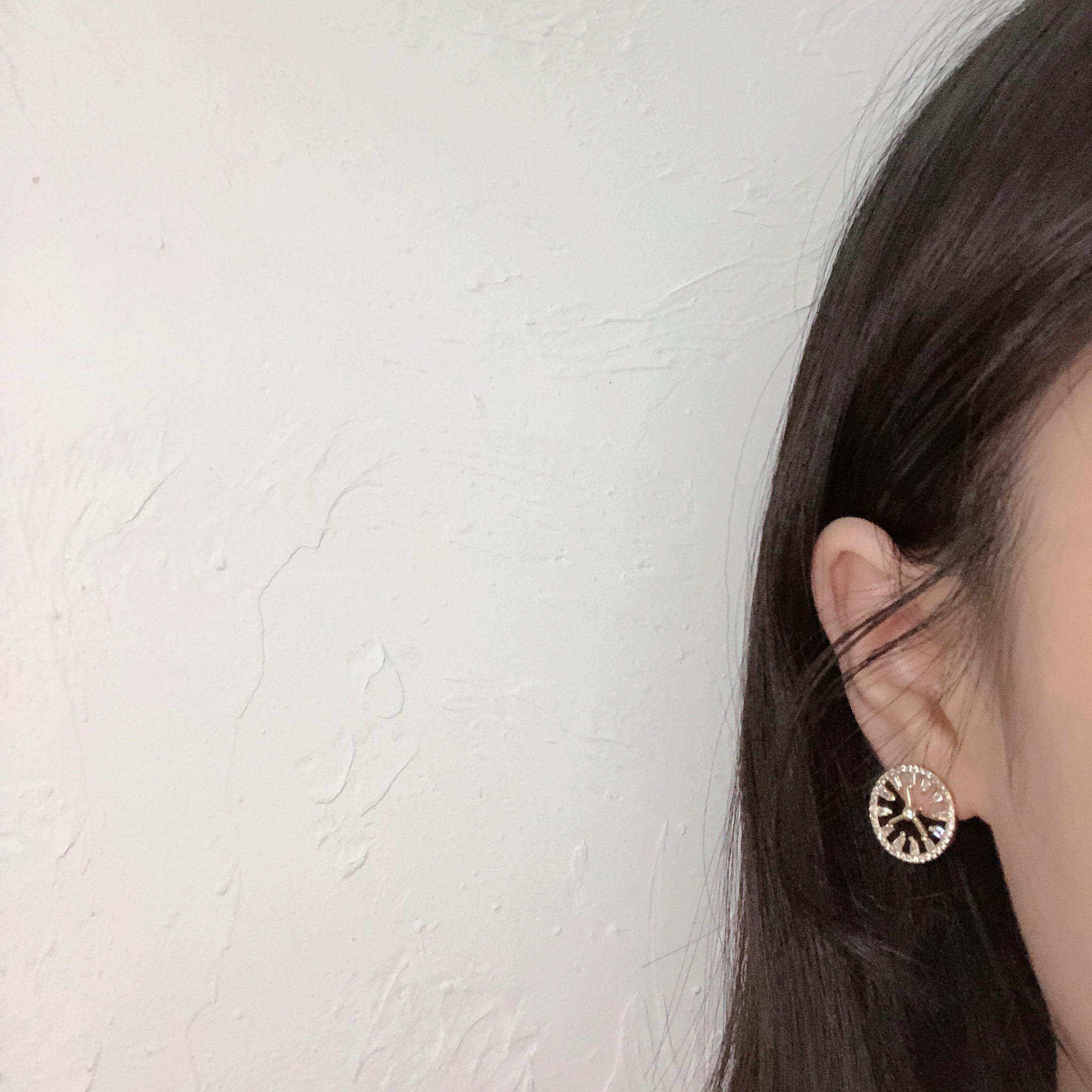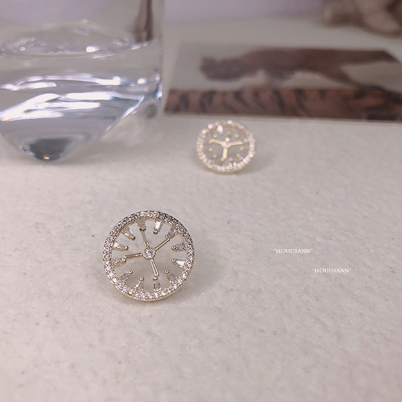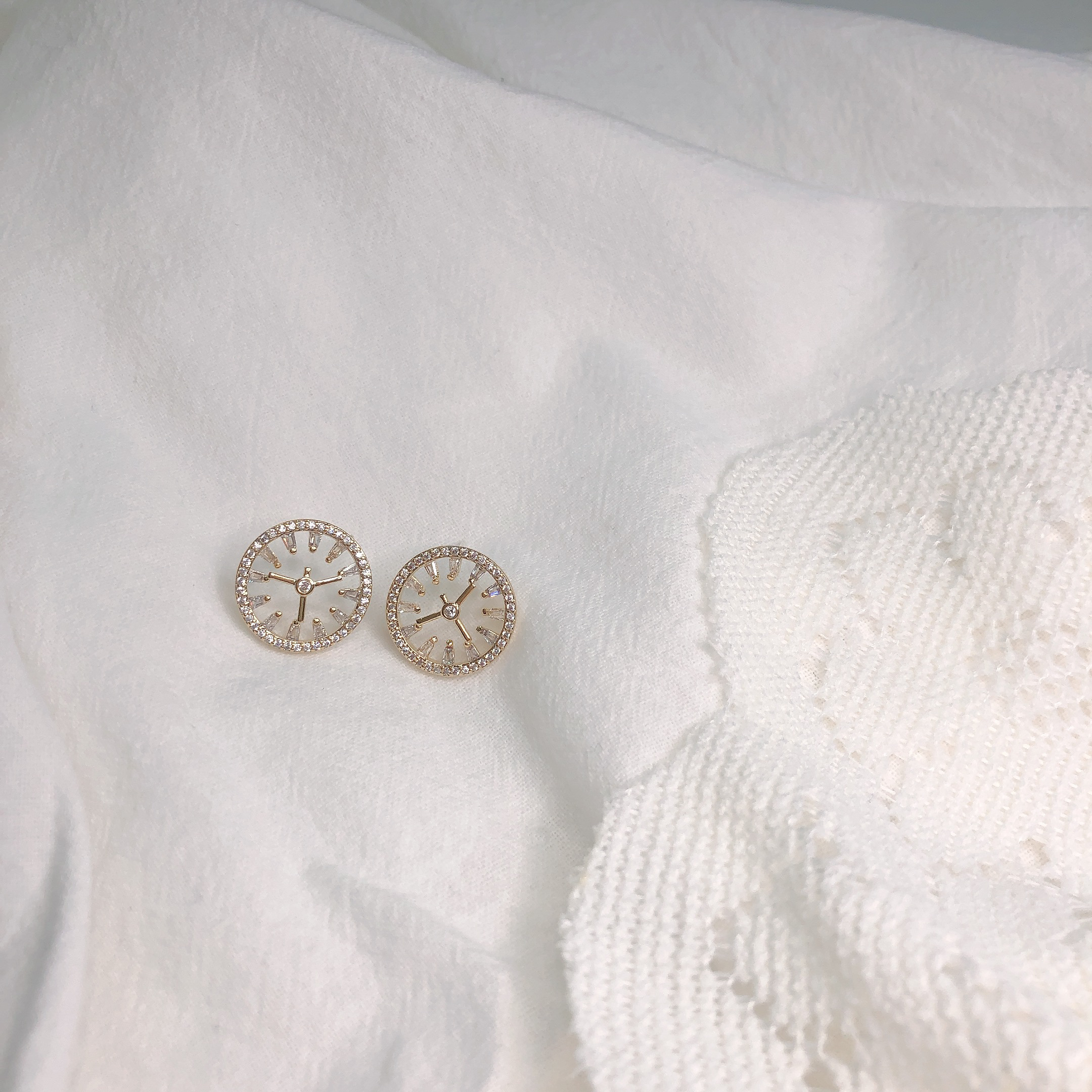 French temperament ins simple palace French micro-inlaid round clock light luxury zircon earrings earrings jewelry female
