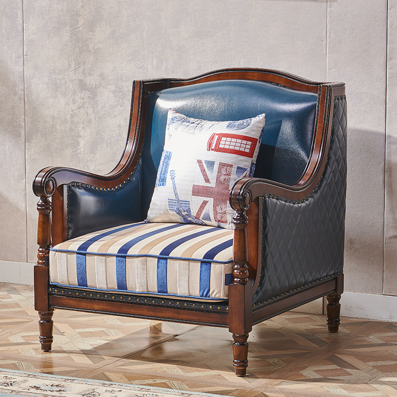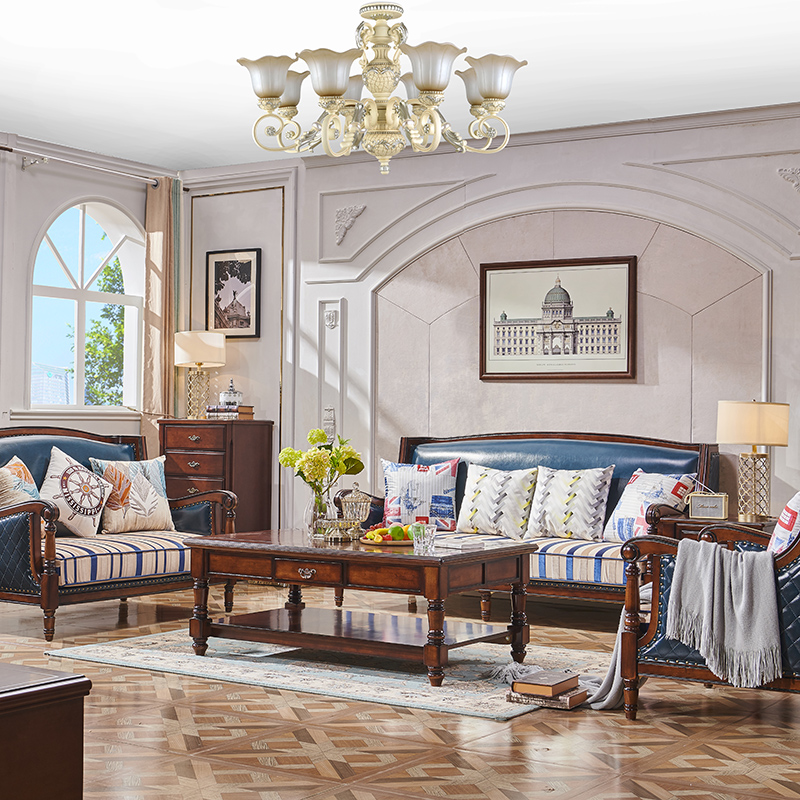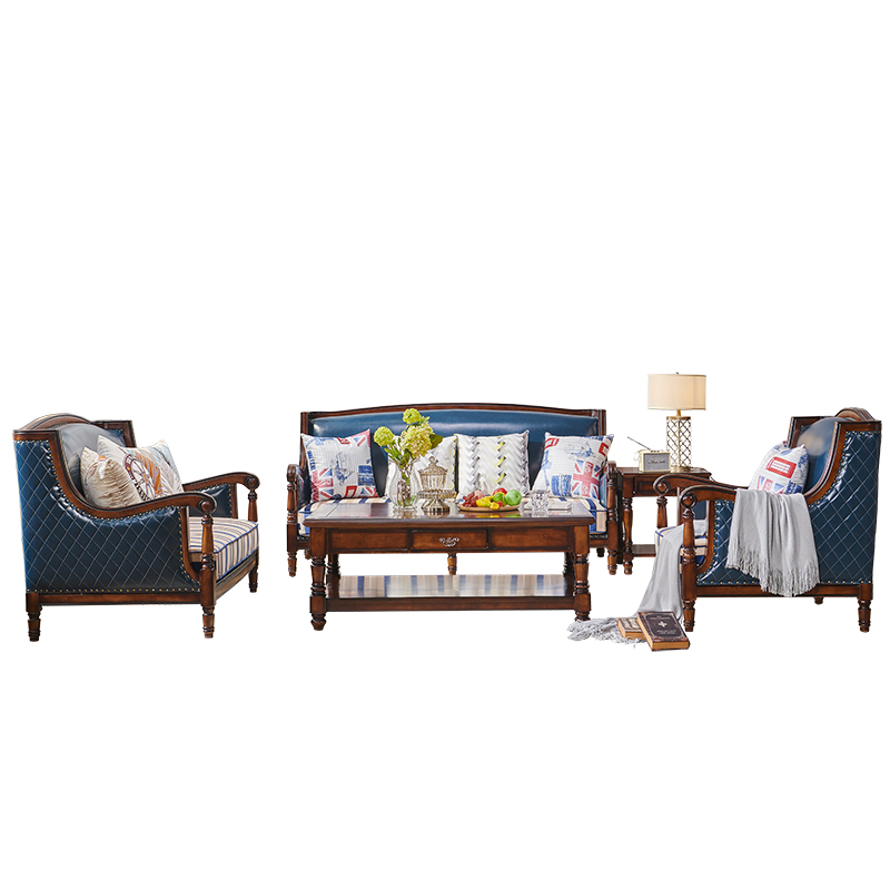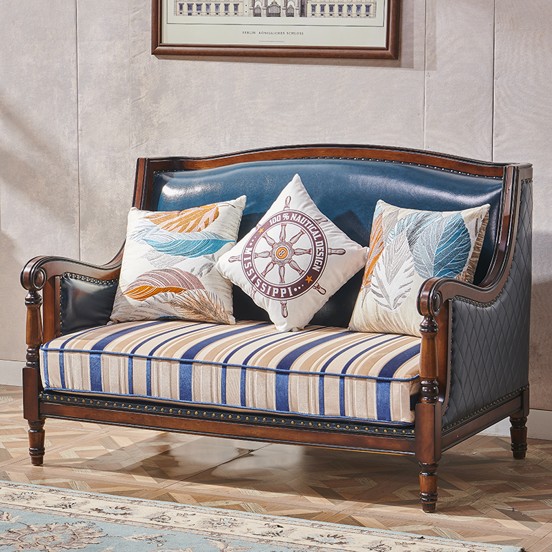 Countryside American solid wood small family type single double trio 1 2 3 Living room Leisure cloth art solid wood sofa composition