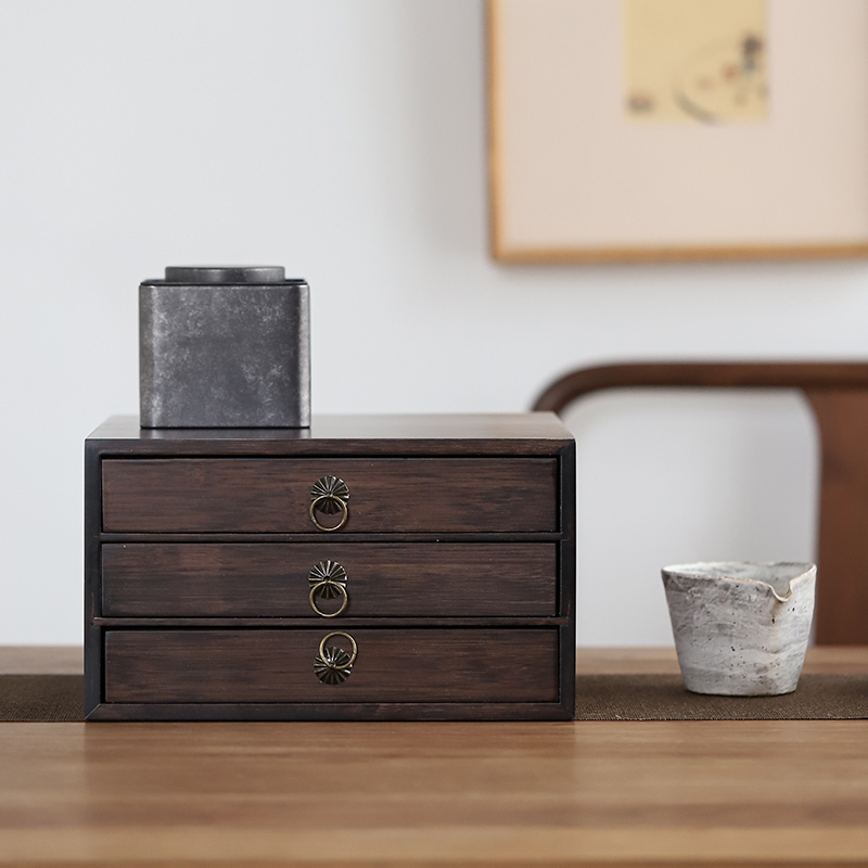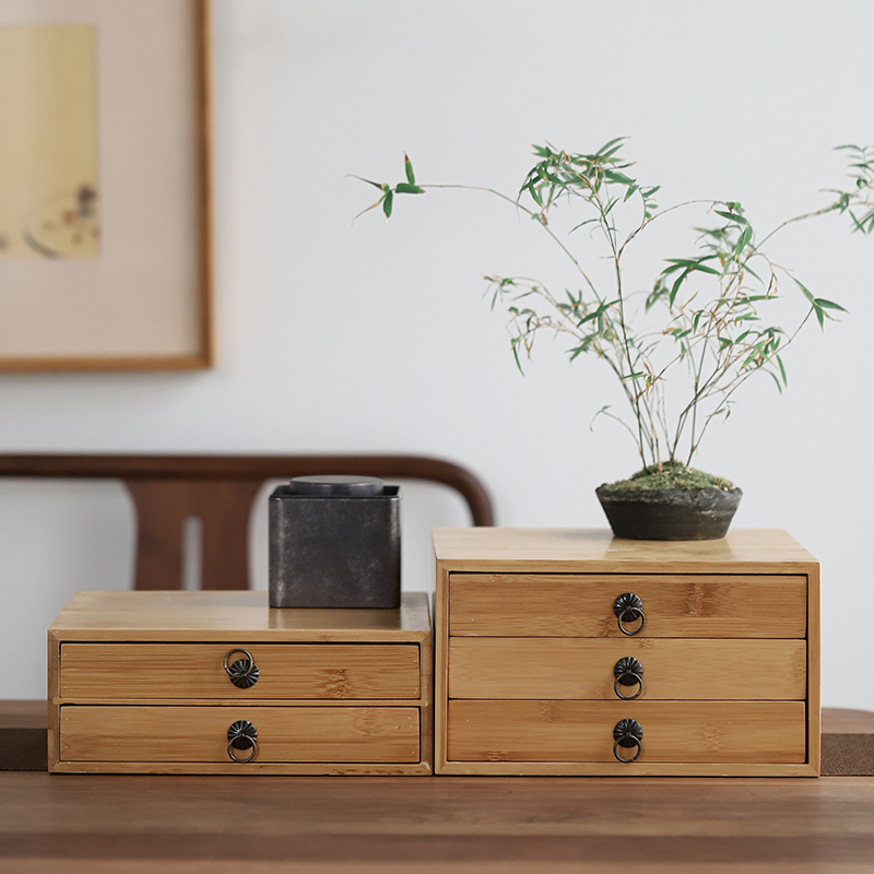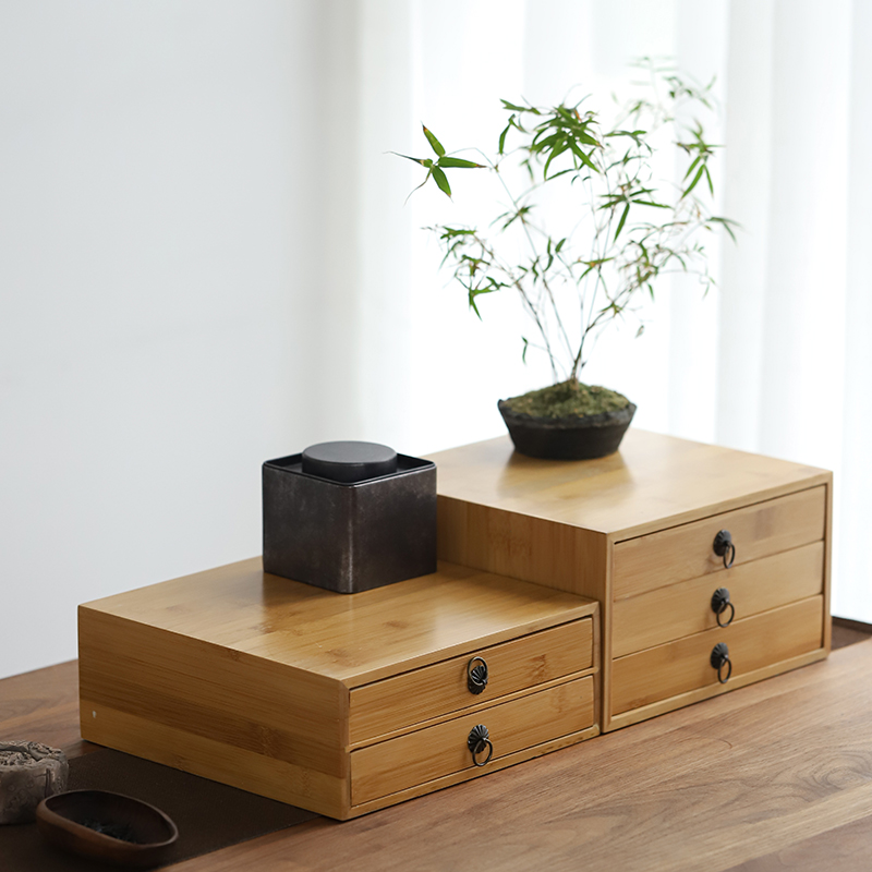 Minima made of bamboo Pu-erh tea cake box Home retro drawer Multi-layer tea box Sub-tea tray tea cabinet Tea Warehousing