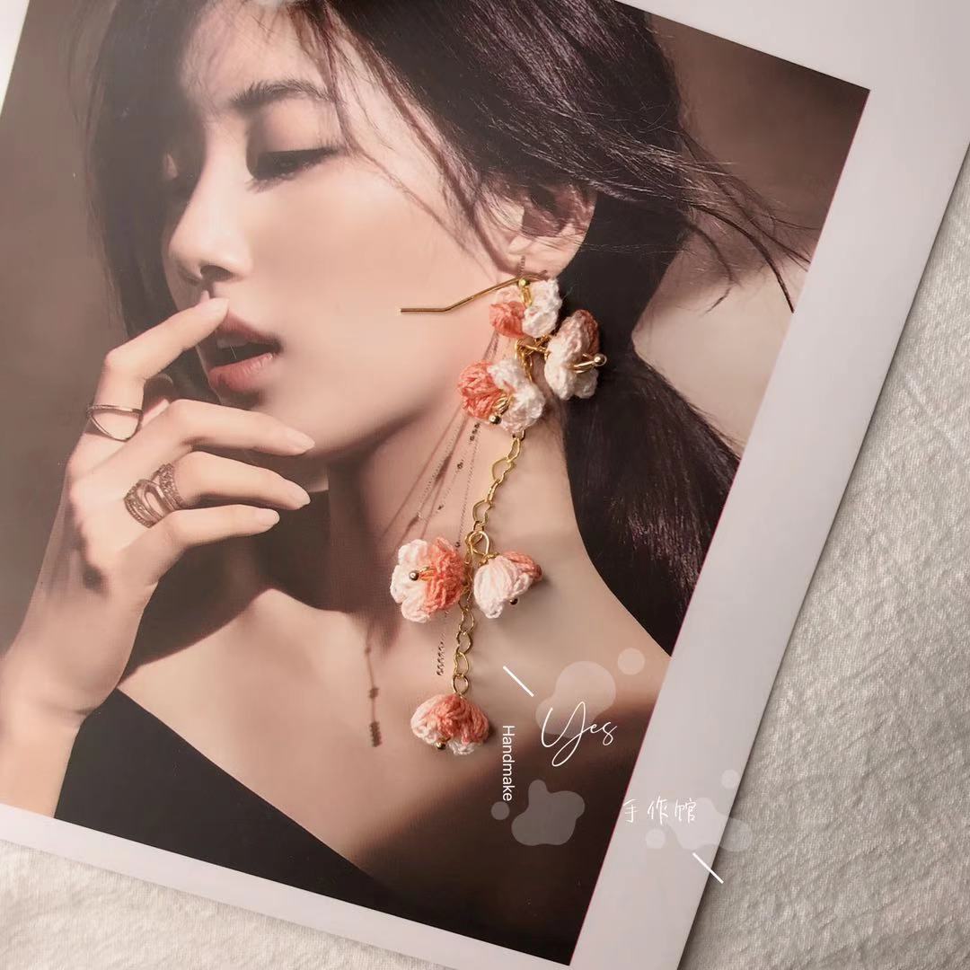 Micro Hook Handmade Anti-Allergy Lace Silk Thread Crochet Puff Small Flower Ear Necklace With an asymptotic ear decoration finished product
