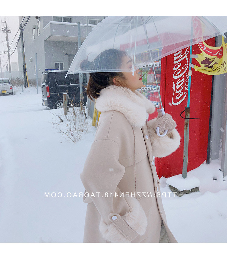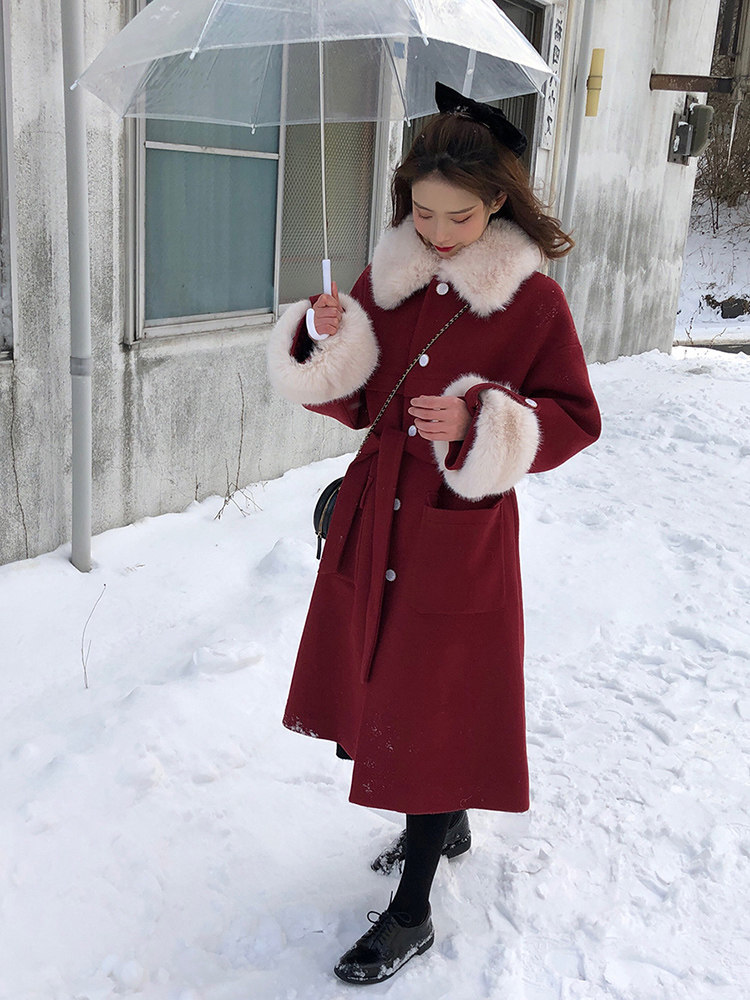 The winter fur coat with a small sub-Korean version easy to thicken the Hepburn red Herbenwind red Herbene coat-Taobao