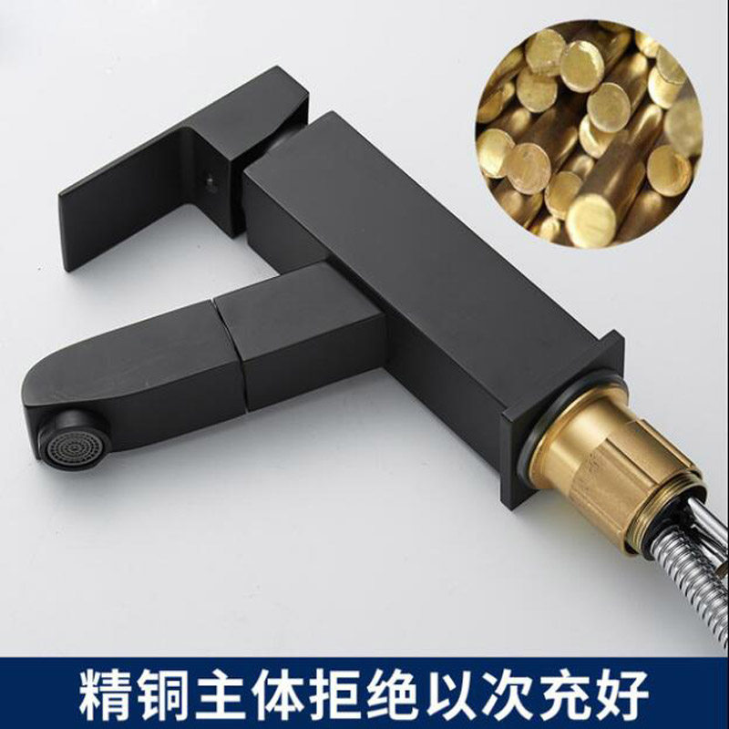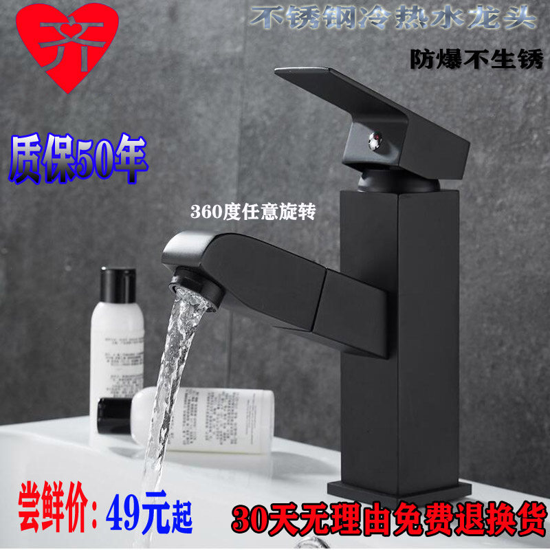 304 stainless steel basin pull-out black pull-out faucet Powder room bathroom hot and cold spout universal bridle