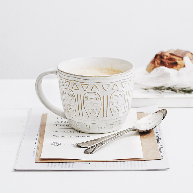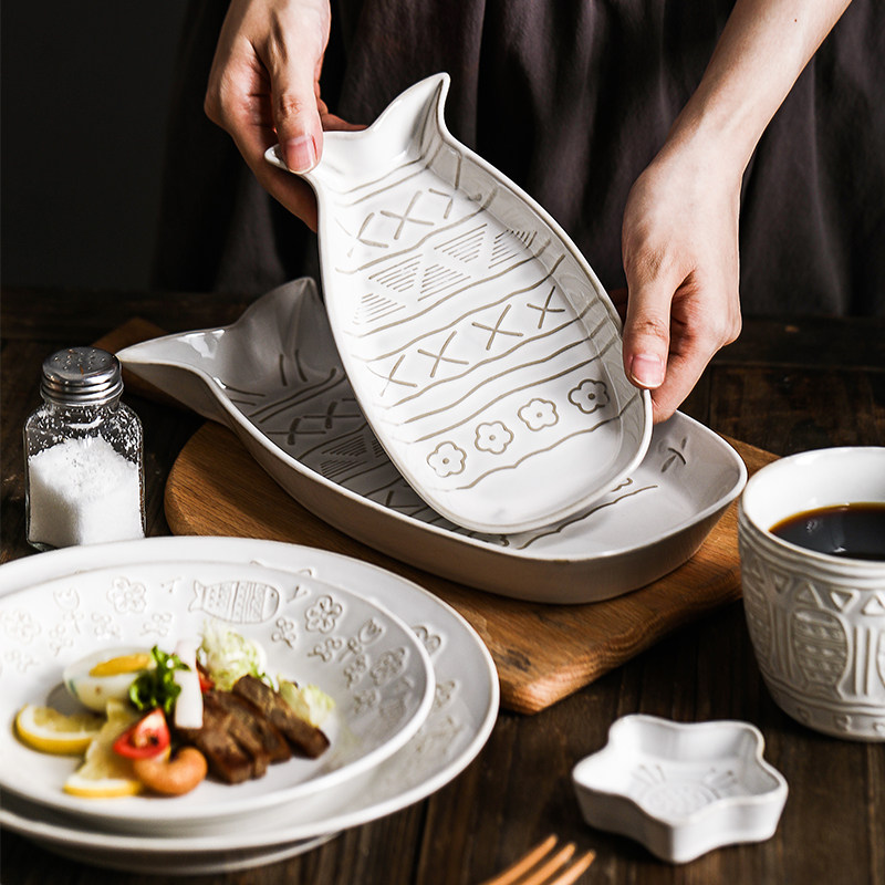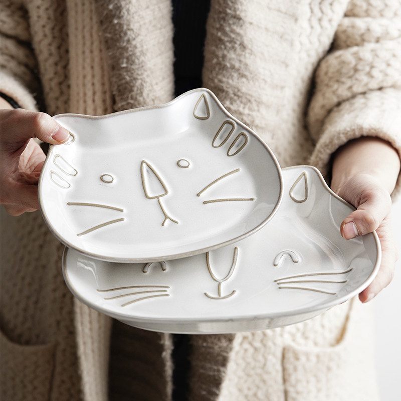 Zetten House Retro White Cartoon Cartoon Ceramic Creative Bowl Disk Disk Combination Fun Mark Cup