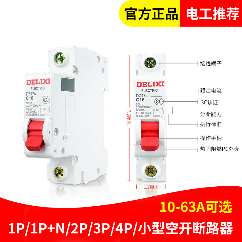 Delixi Official Flagship Store Air Switch Household Circuit Breaker 1P2P20A Air Open Switch Switch C63A