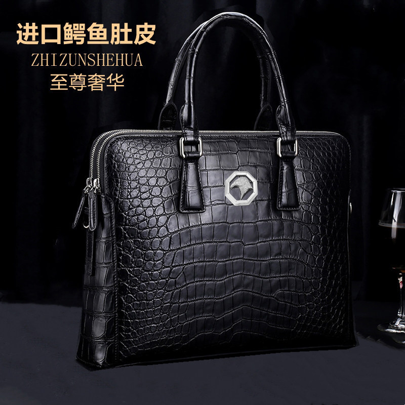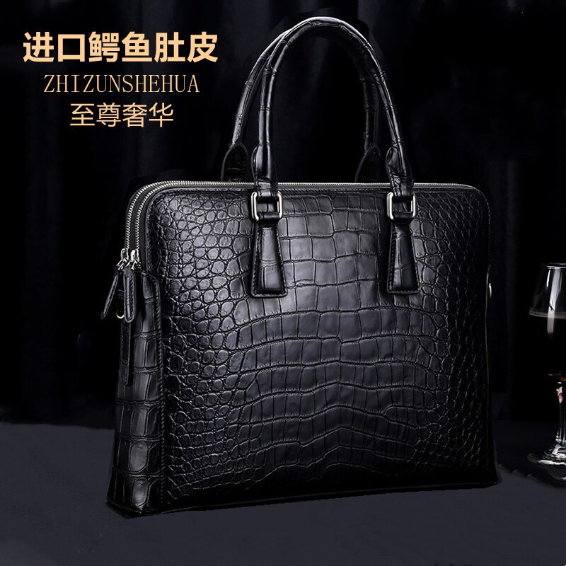 New handbag male crocodile leather business casual male crocodile belly leather briefcase light and luxurious texture computer single shoulder bag