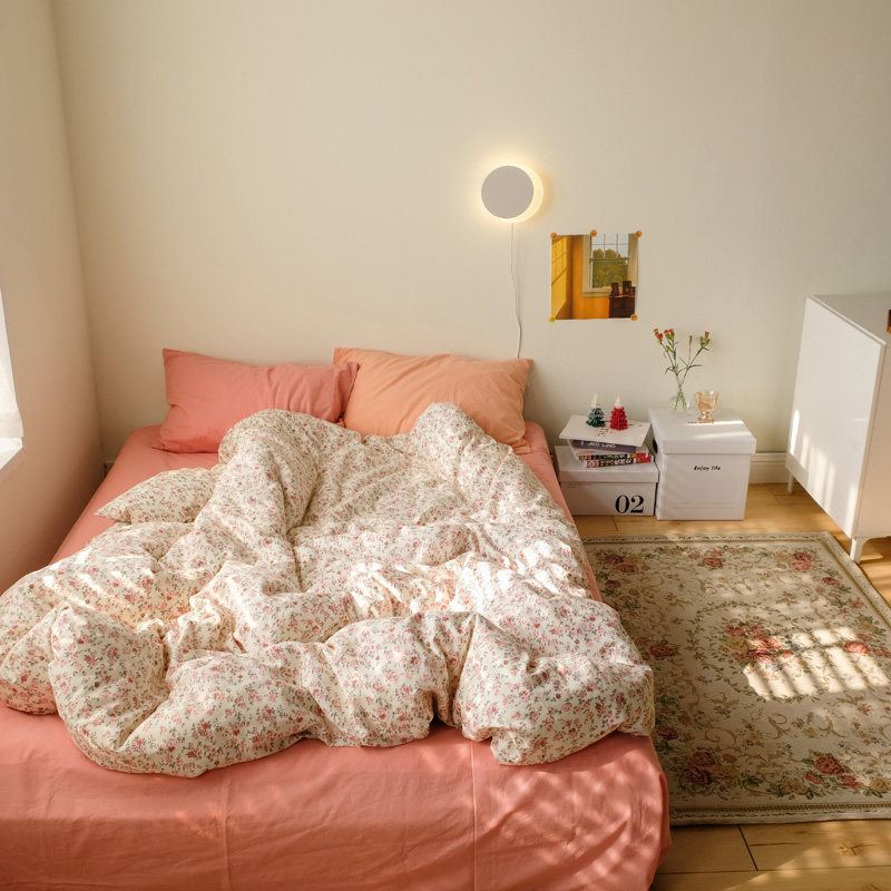 Korean teas mix rose pure cotton four pieces small frescoed gentle fields Garden Wind Crummy Cotton Bed bedding