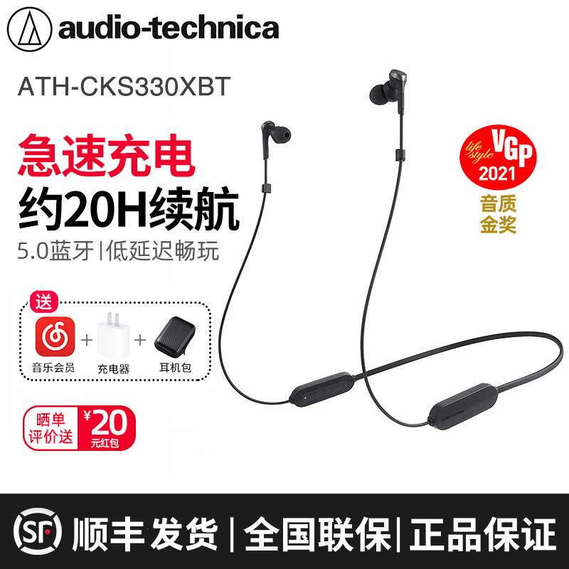Audio-Technica CKS330XBT wireless bluetooth headset neck hanging neck in-ear sports running super long battery life headset