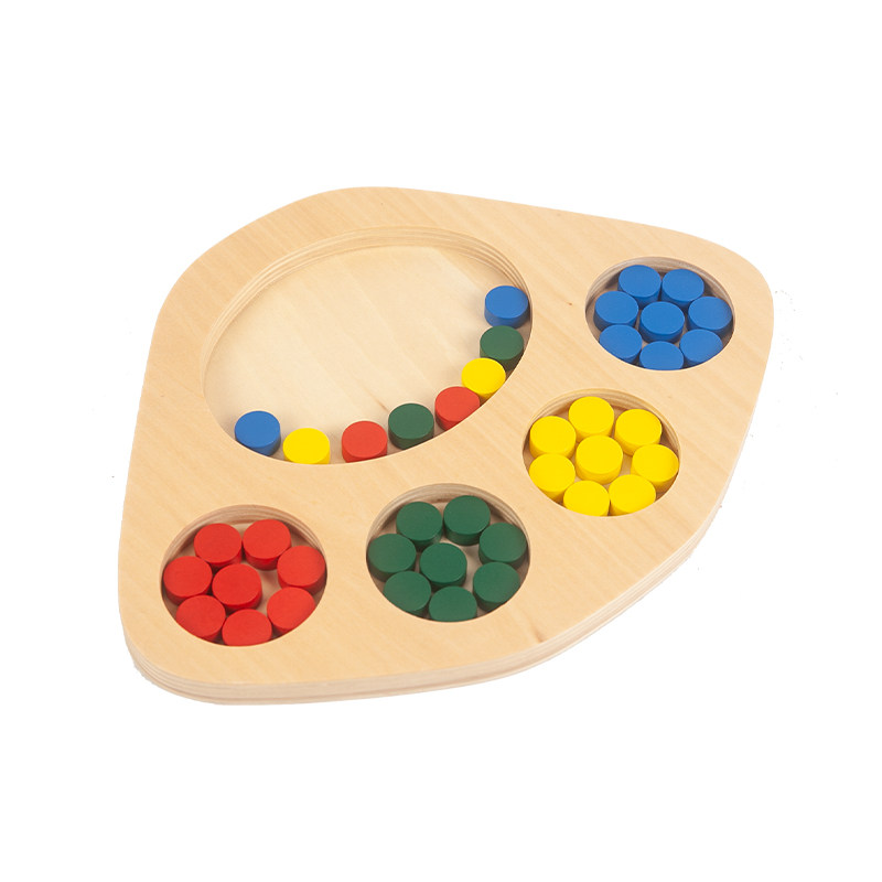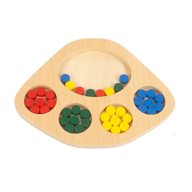 Monte teaching aids Monte Monte Thoreau 0-3 young children Early teaching Puzzle Toy Wooden dell' s with coloured small round sheet