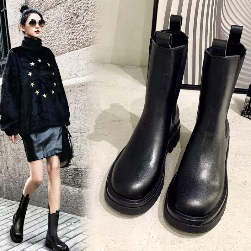 Hong Kong mona same style Martin boots female mid-tube 2020 thick bottom British windmill thin boots short boots chimney boots