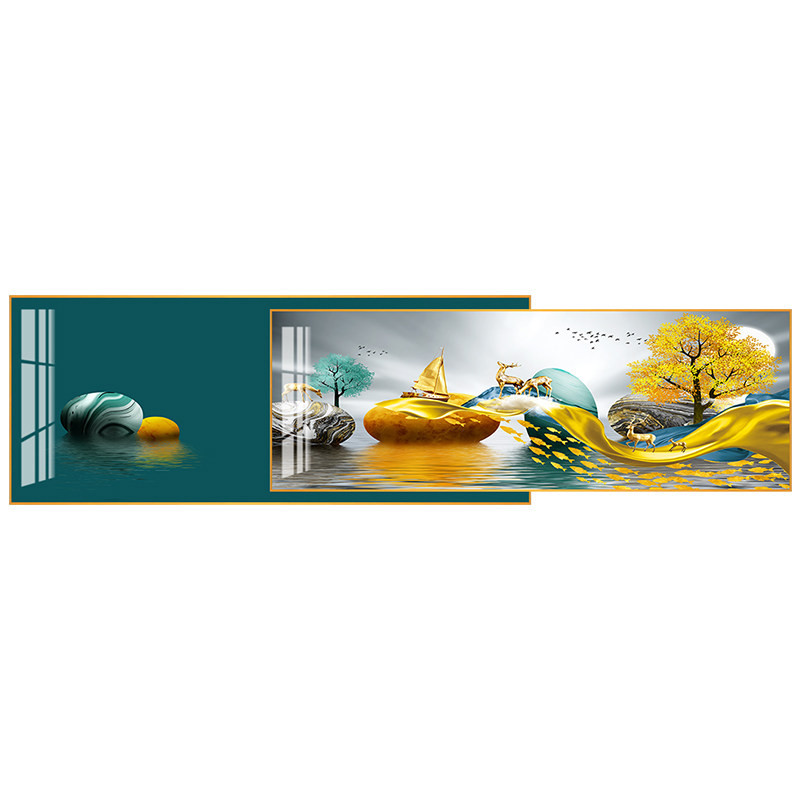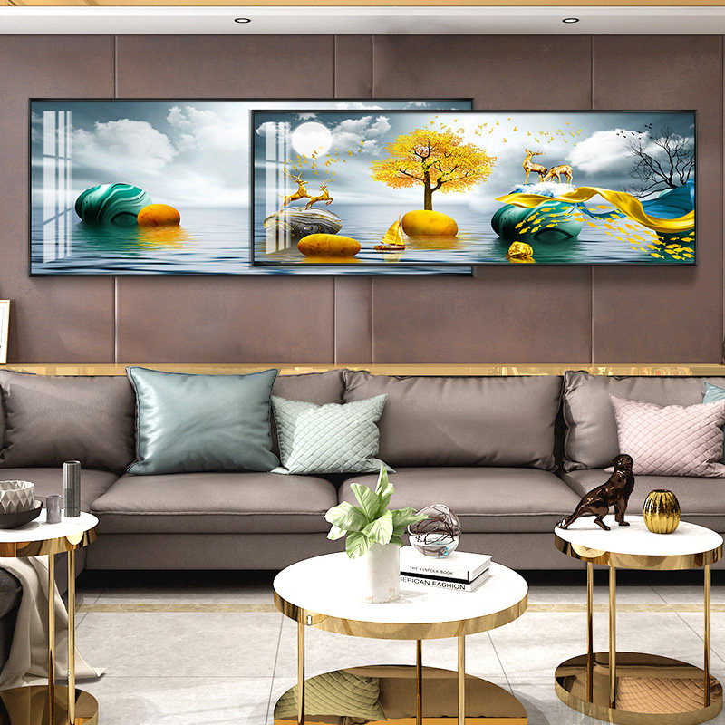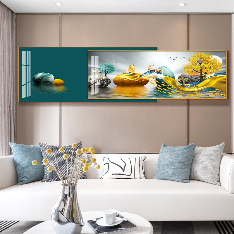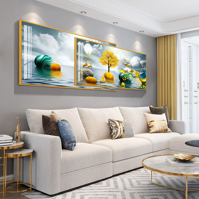 Modern minimalist living room decorative painting atmospheric light luxury sofa background wall hanging painting superimposed mural inlaid diamond crystal porcelain painting