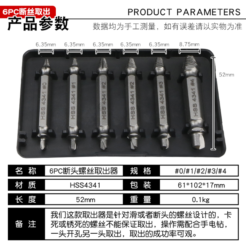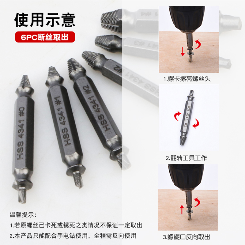 Tool for the pull out of the shattered screw breaking screw out of the batch batch double head break wire extractor