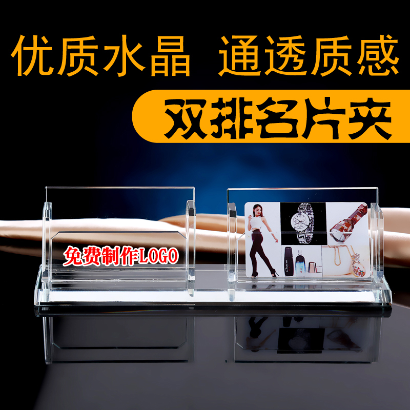 Business crystal acrylic business card box creative boutique desktop storage box double-layer office transparent large-capacity business card holder custom engraving logo personality put business card box on the table business card holder