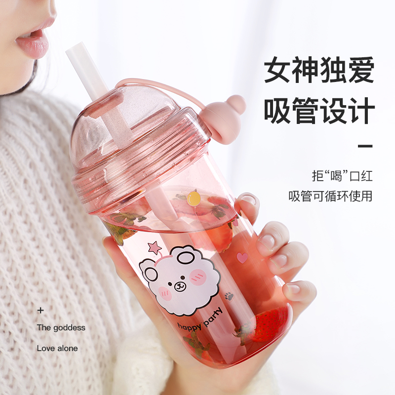 Net red bubble tea cup household children lovely students female high color value straw cup large capacity