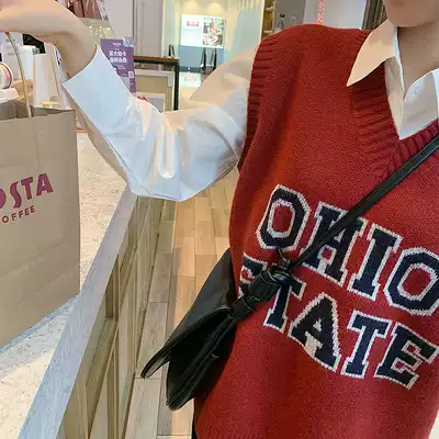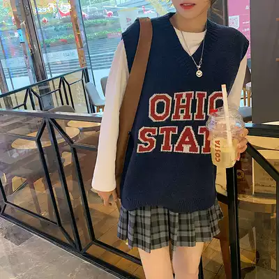 Student Times foreign letter horse clip ~ 2021 spring new interior simple Joker color mother knitted vest