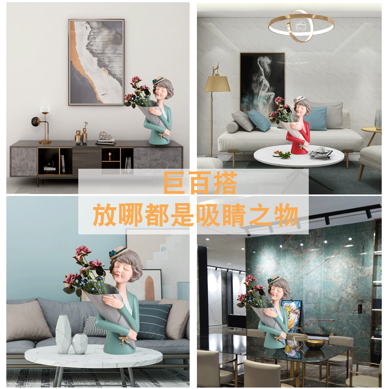 Bouquet girl decoration light luxury wine cabinet decoration living room TV cabinet home desktop decoration drying vase flower arrangement
