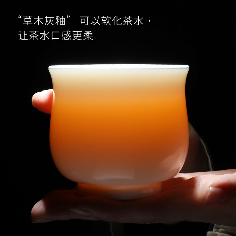 Wonderful lotus-scented artisanal grass wood grey glazed master's cup Deed goat fat jade porcelain white porcelain single-cup ceramic tea drinking cup