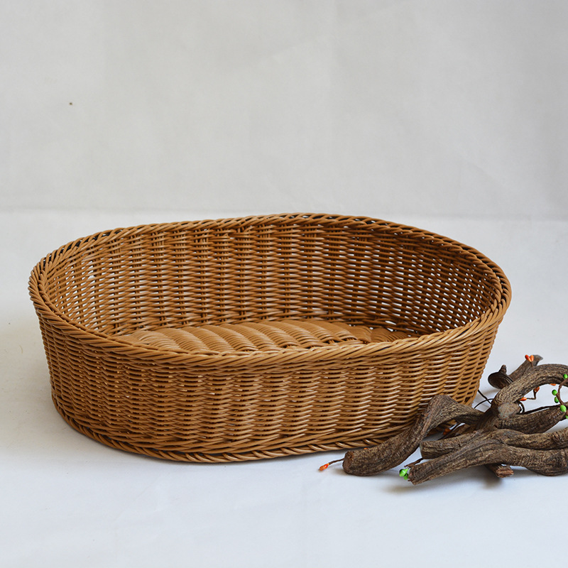 Imitation rattan fruit basket rattan blue oval display vegetable basket melon and fruit storage basket plastic high temperature resistant high-grade