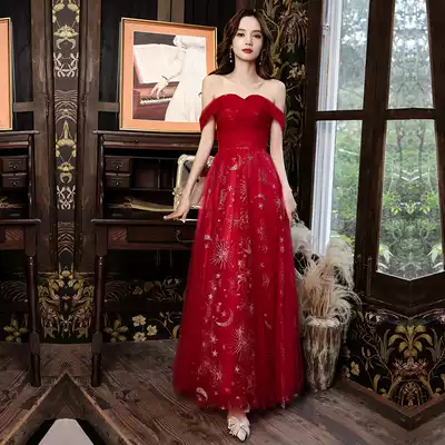 Toast Bride 2021 new summer home banquet engagement evening dress Women can wear shoulder dress