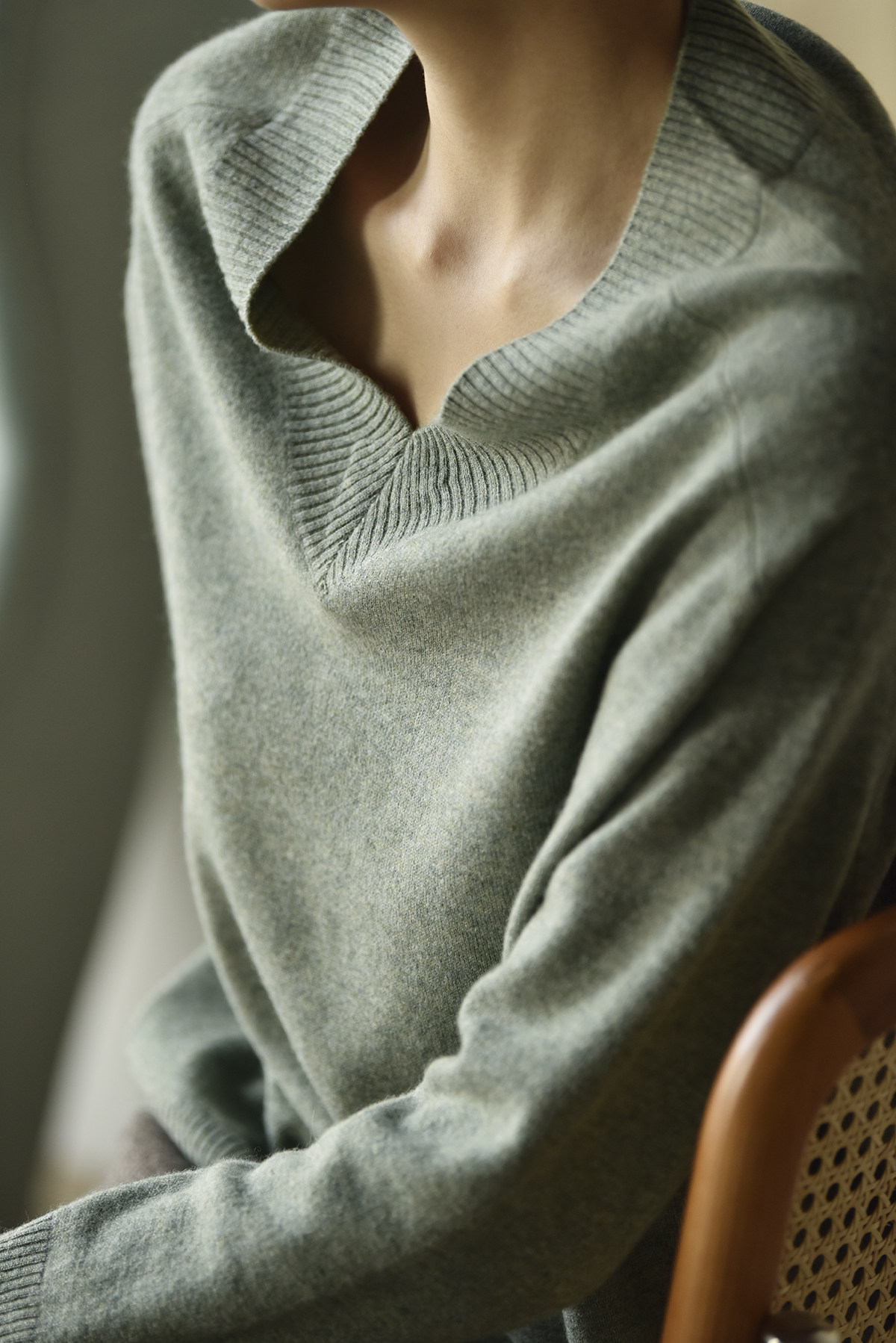 APCSHOP suede share 21 Winter European small crowdLady Jane about wind knit V neck long sleeve cashmere