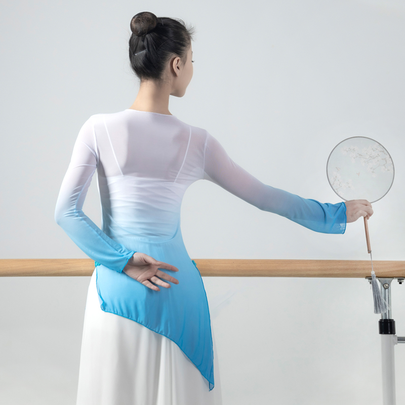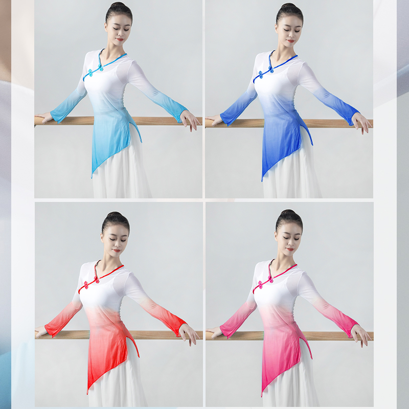 Classical dance yarn clothes flutter with long sleeves The gradual performance of the gradual floor art exam to serve the Chinese dance national dance clothes blouses