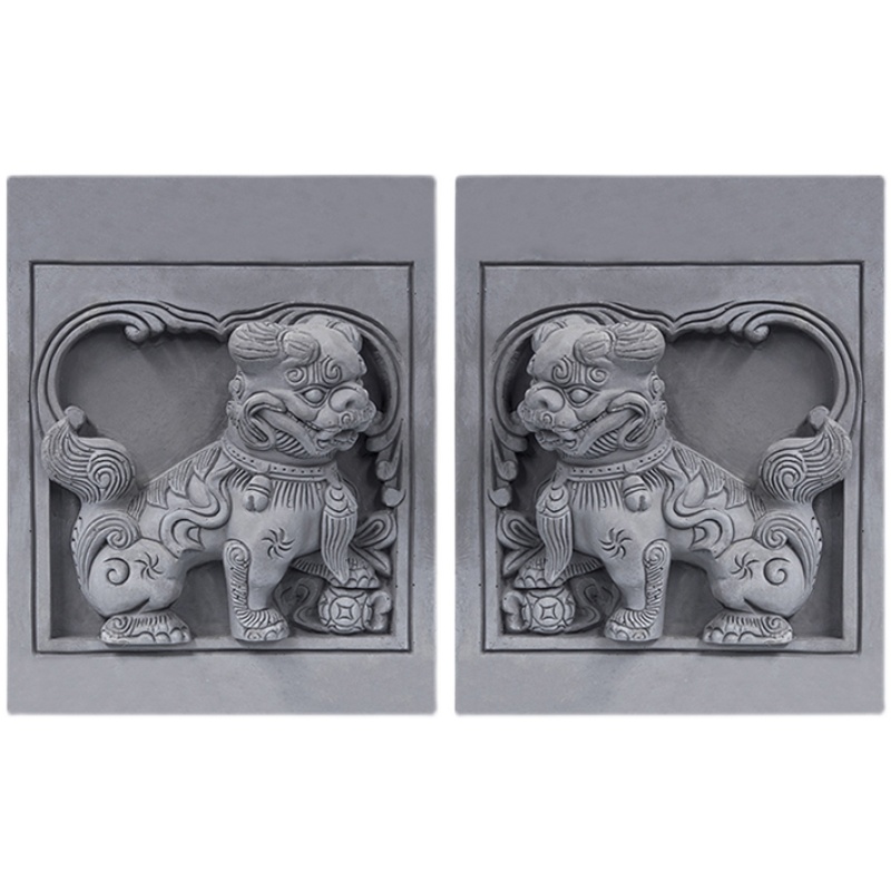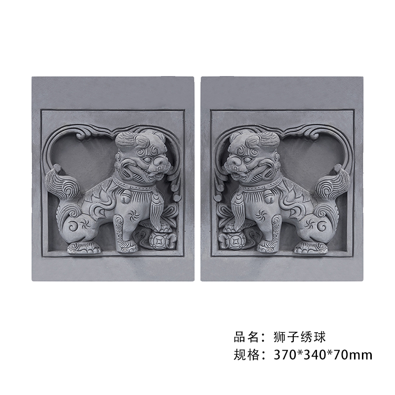 Antique brick carving Hui school brick carving courtyard horse head wall decoration door head relief 30*24cm Lion hydrangea
