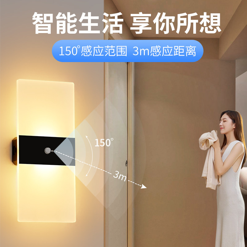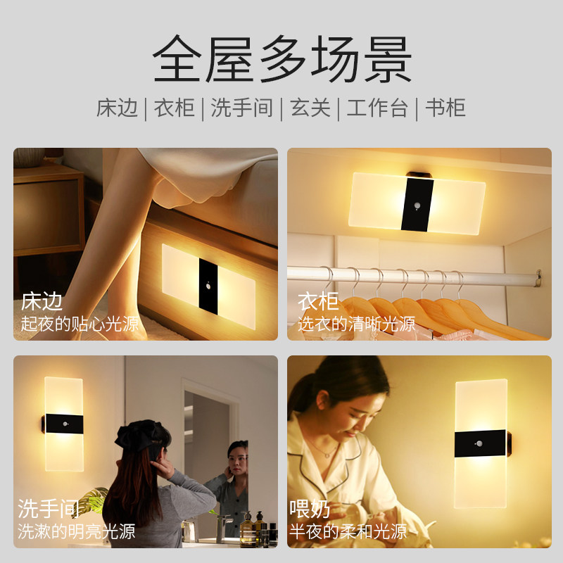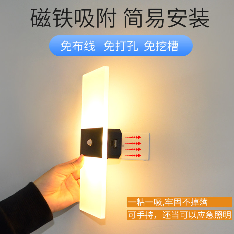 Smart human sensing light sensation LED small night light headboard USB charging night light lamp gangway bedroom wardrobe eye protection light