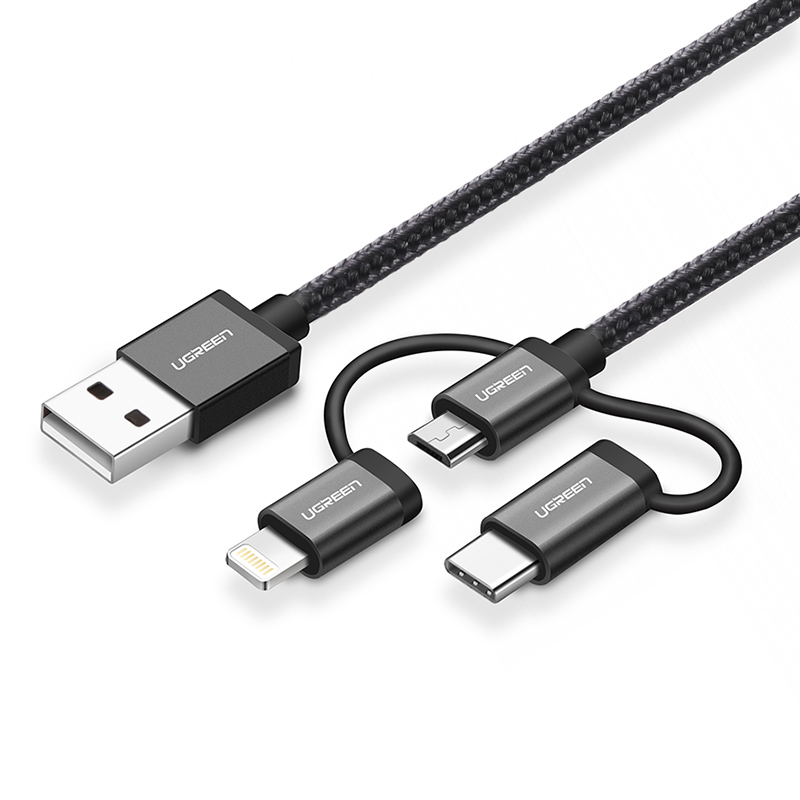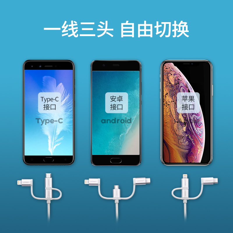 UGREEN Green Union three-in-one data line one drag triple-head quick-charge multifunction flat Android type-c