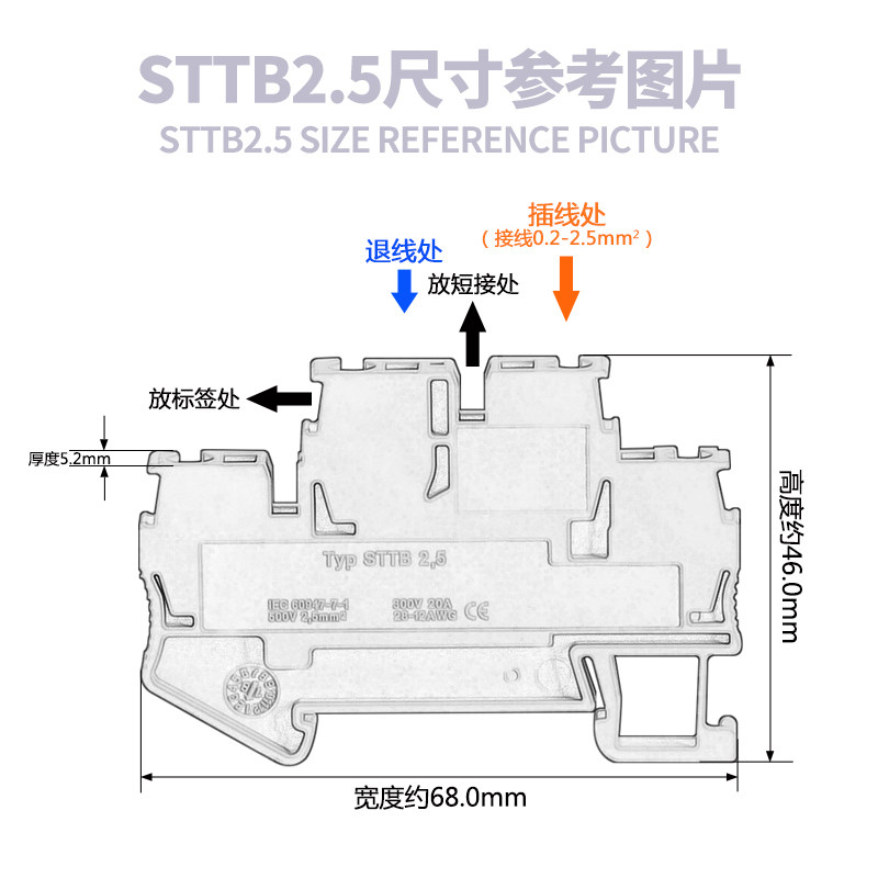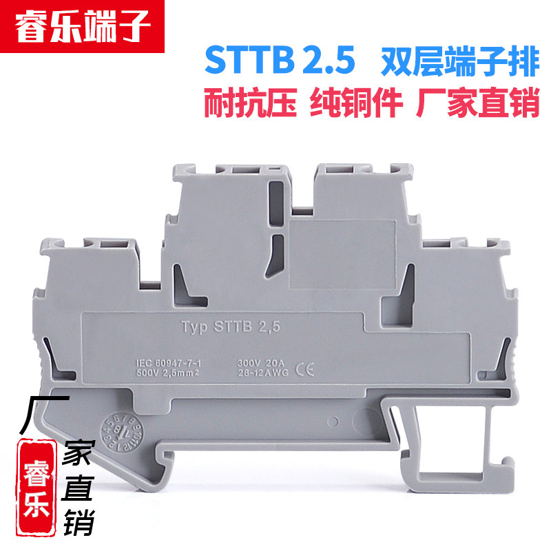 STTB2 5 spring type double layer wiring end subtable flame retardant pure copper spring sheet 2 5mm free screw rail terminals