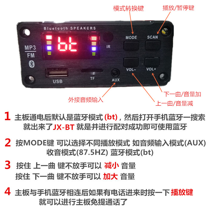 12V 25W MP3 Decoder Board Color Screen Motherboard with Bluetooth Stereo Lossless Sound Player