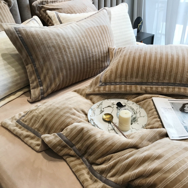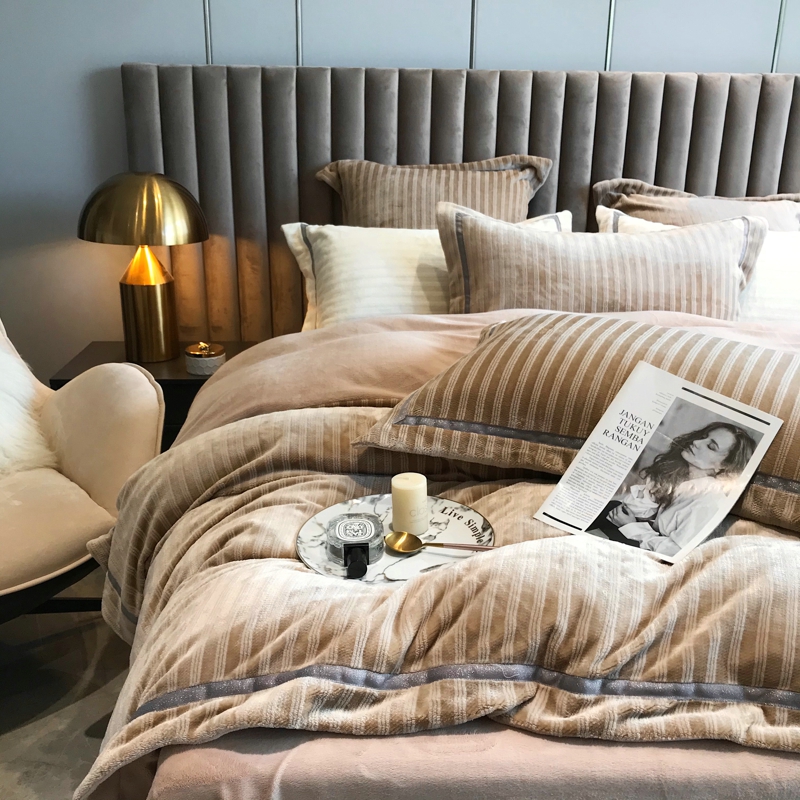 Light Extravagant High-end Thickened Coral Suede Four Pieces Winter Warm Quilt Cover Milk Suede Flannel Flannel Bed Accessories