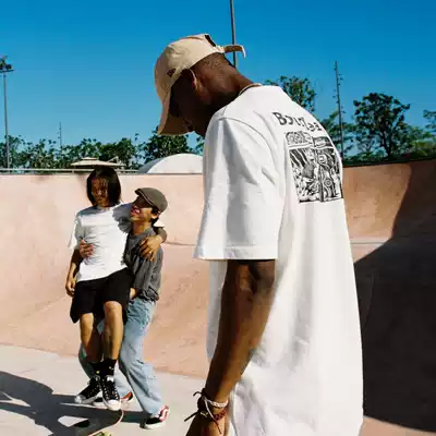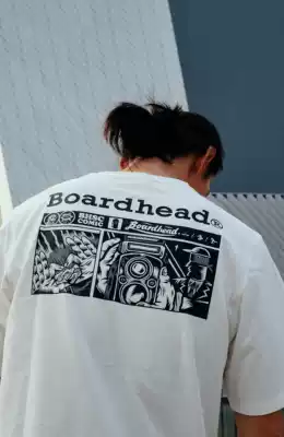 BOARDHEAD SS21 white comic print skateboard wide short sleeve t-shirt