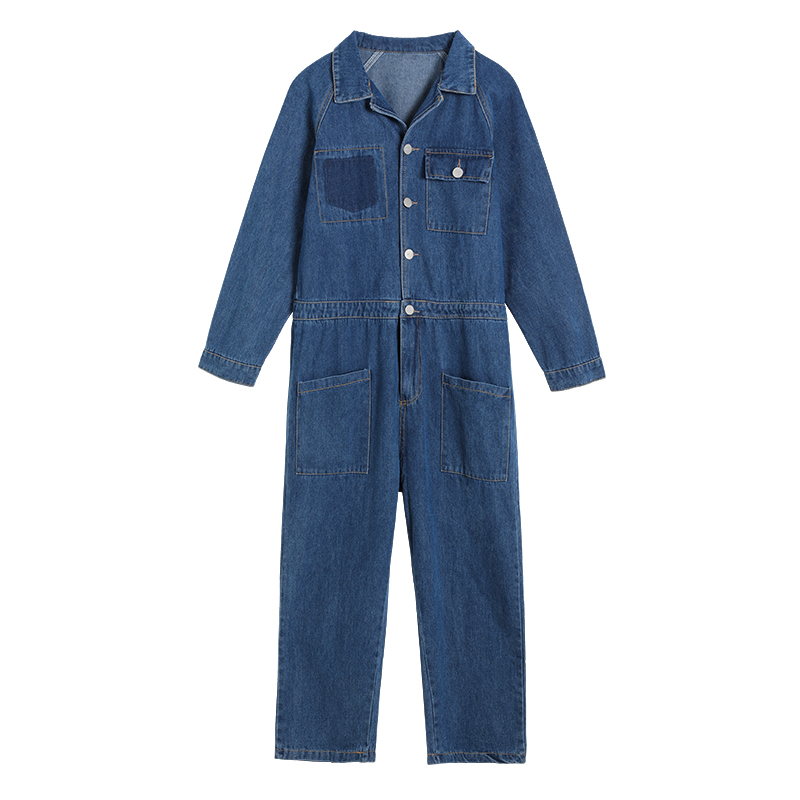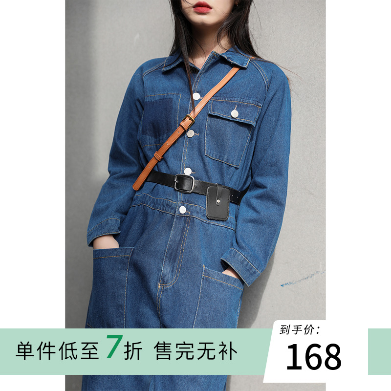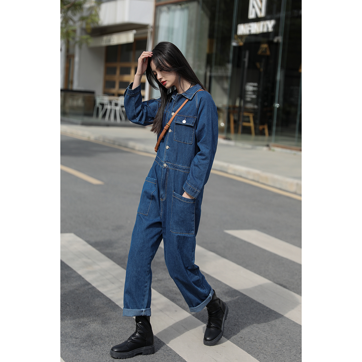 "Again Alley" blue denim even body pants woman 2021 new autumn and winter retro Korean version loose tooling casual pants