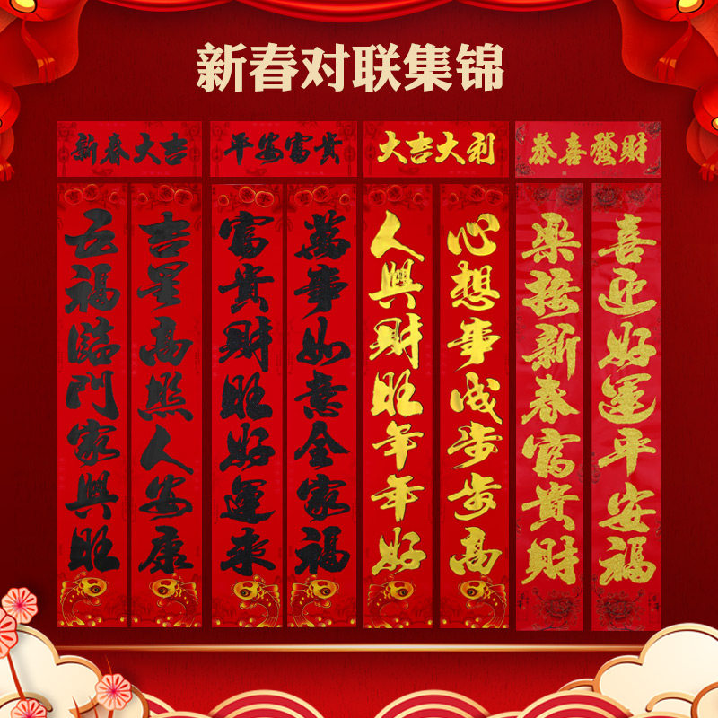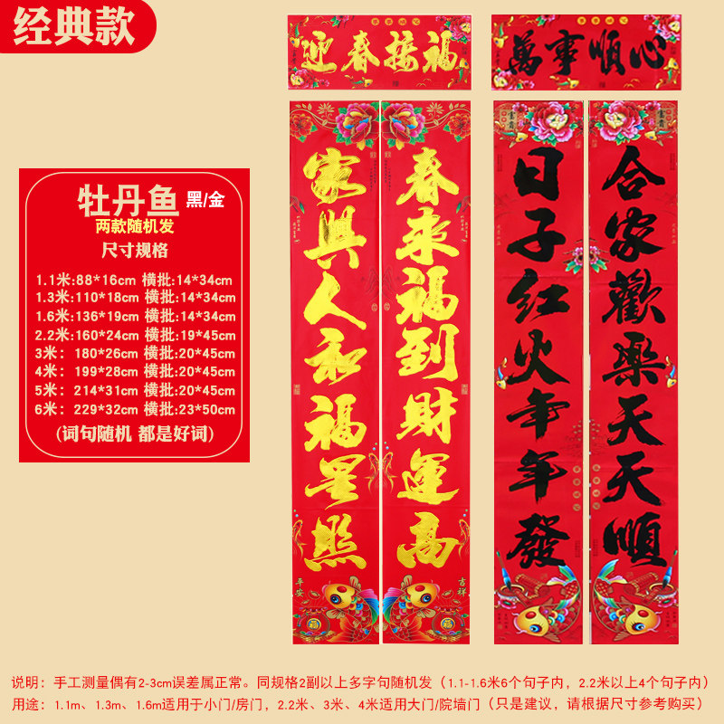 Peony fish black word couplet Peony fish gold word couplet Housewarming couplet Wedding wedding couplet Tiger Year Zodiac couplet Golden Boy couplet Flower blossom rich and noble full golden word Flower blossom rich and noble full gold word Flocking gold word Flocking black word Golden boy couplet black word
