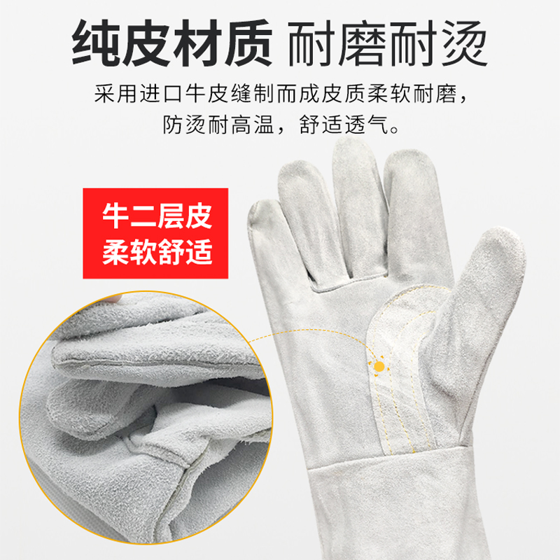 Welding glove electrically welded with high temperature resistant and anti-wear, seamless and thickened double layer special protection Lauded bulls leather welding