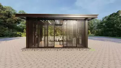 Large stainless steel corridor frame Community hotel mountain background wall Shaped landscape sculpture Dome gazebo corridor