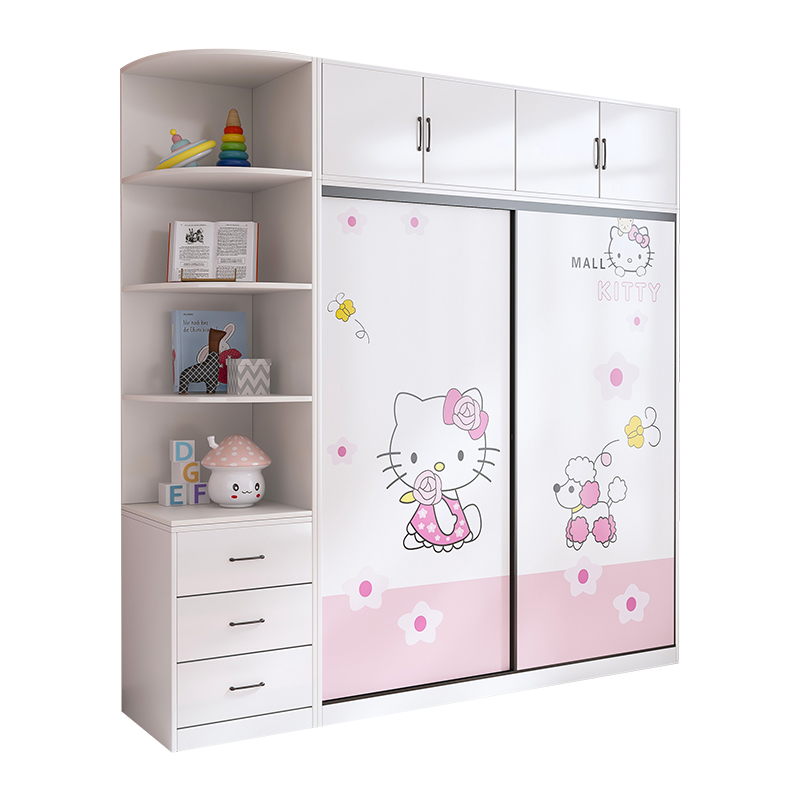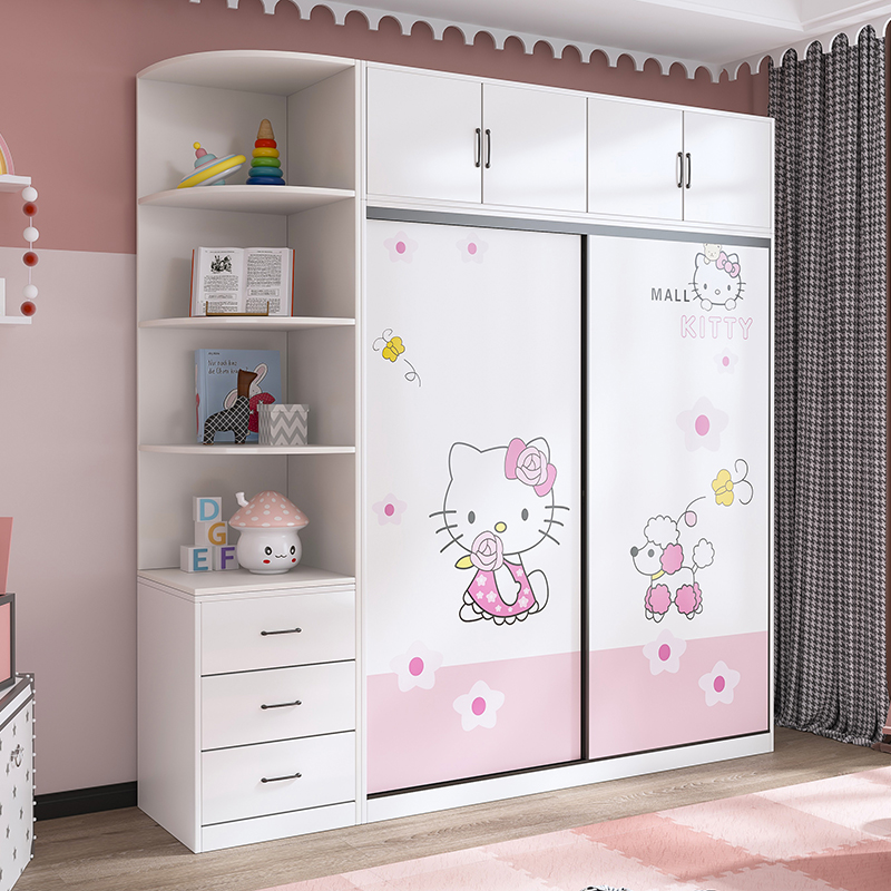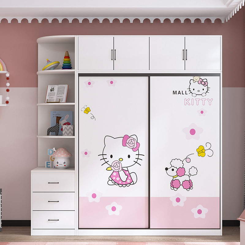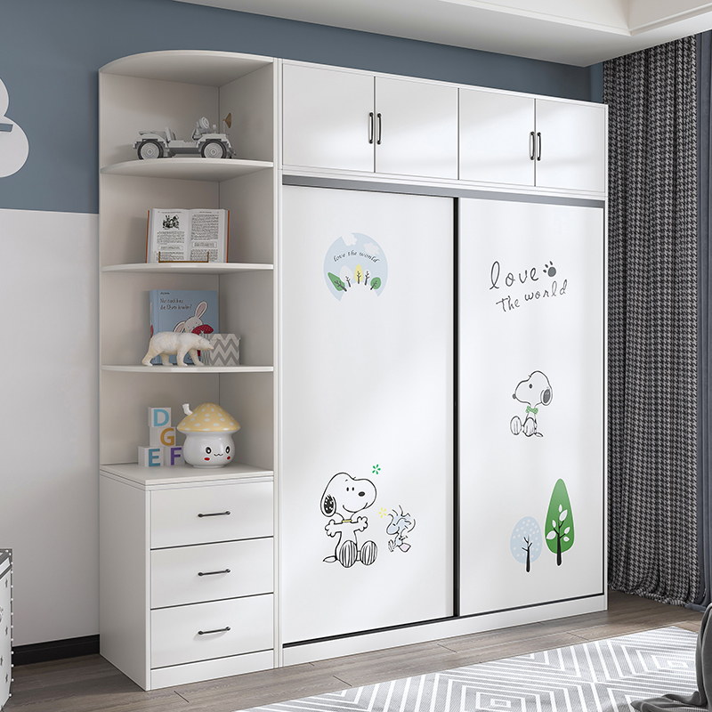 Children's wardrobe Home bedroom Modern simple sliding door storage cabinet wardrobe Free installation simple cartoon wardrobe