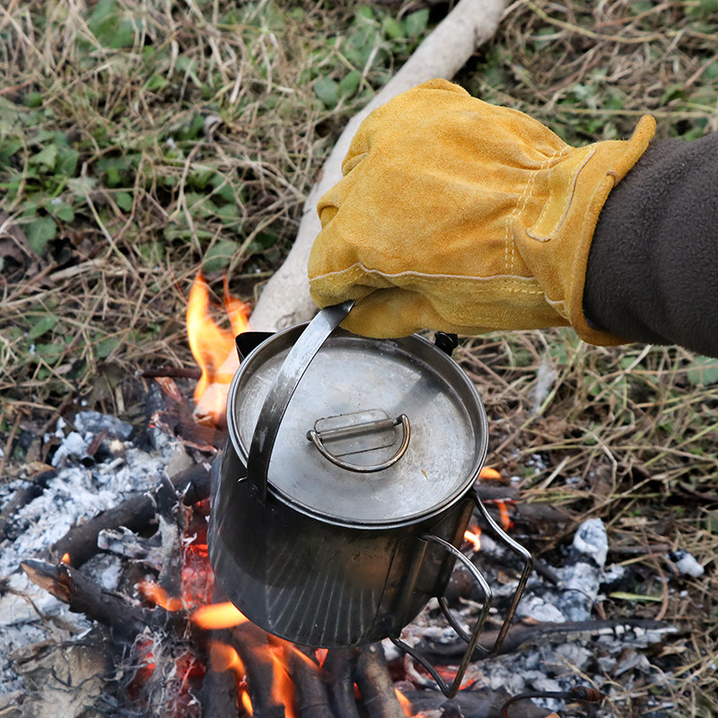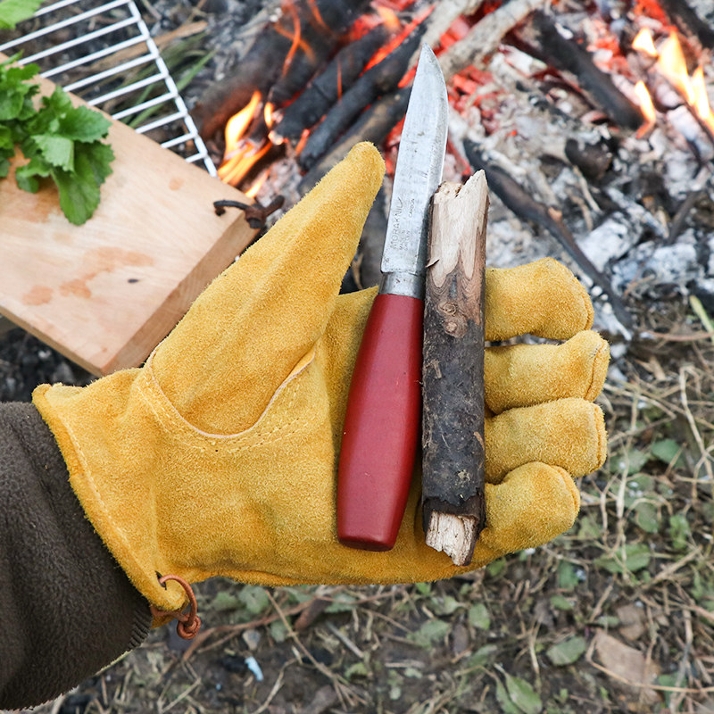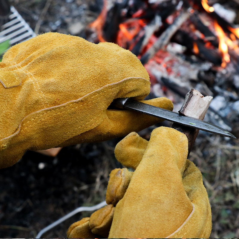 bushcraft outdoor camping cowhide gloves high temperature anti-cut anti-scalding wear-resistant heat insulation cowhide gloves