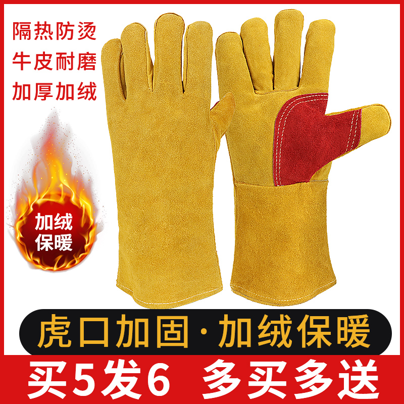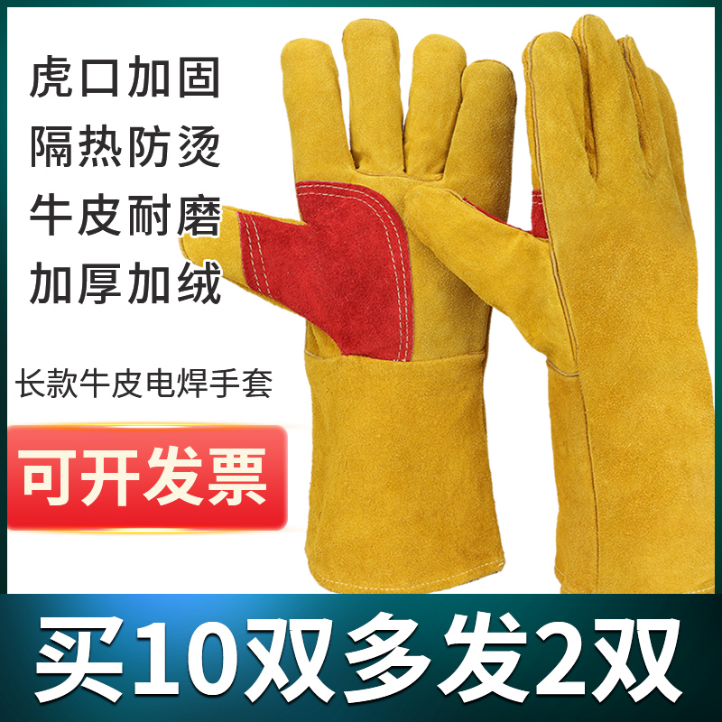 Cowhide welder gloves high temperature resistant anti-scalding long and short soft wear-resistant welding heat insulation protective labor insurance gloves
