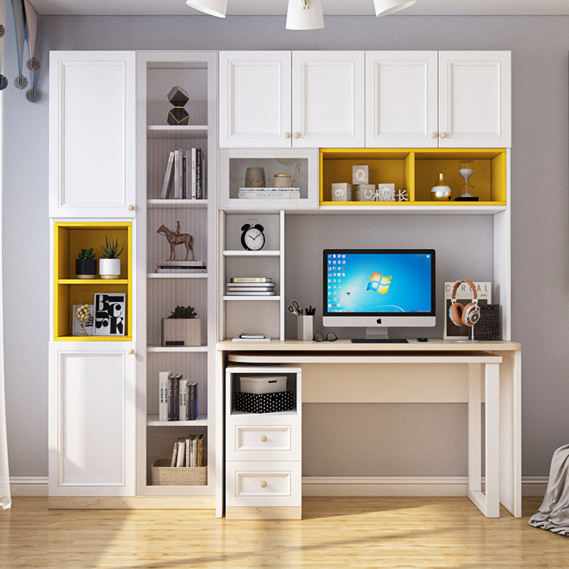 Bookcase desk one-piece combination rotating study table home computer desk modern minimalist bookshelf multi-functional corner table