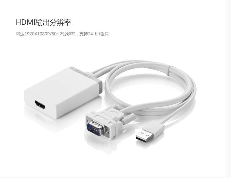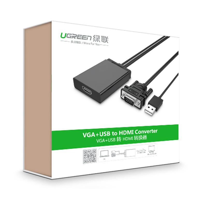 UGREEN Green Union VGA swivel HDMI converter computer connected TV HD adapter with audio USB powered