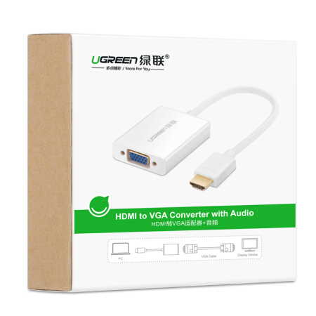 Green United HDMI transfer VGA wire adapter with audio port HD film converter connecting wire TV projector