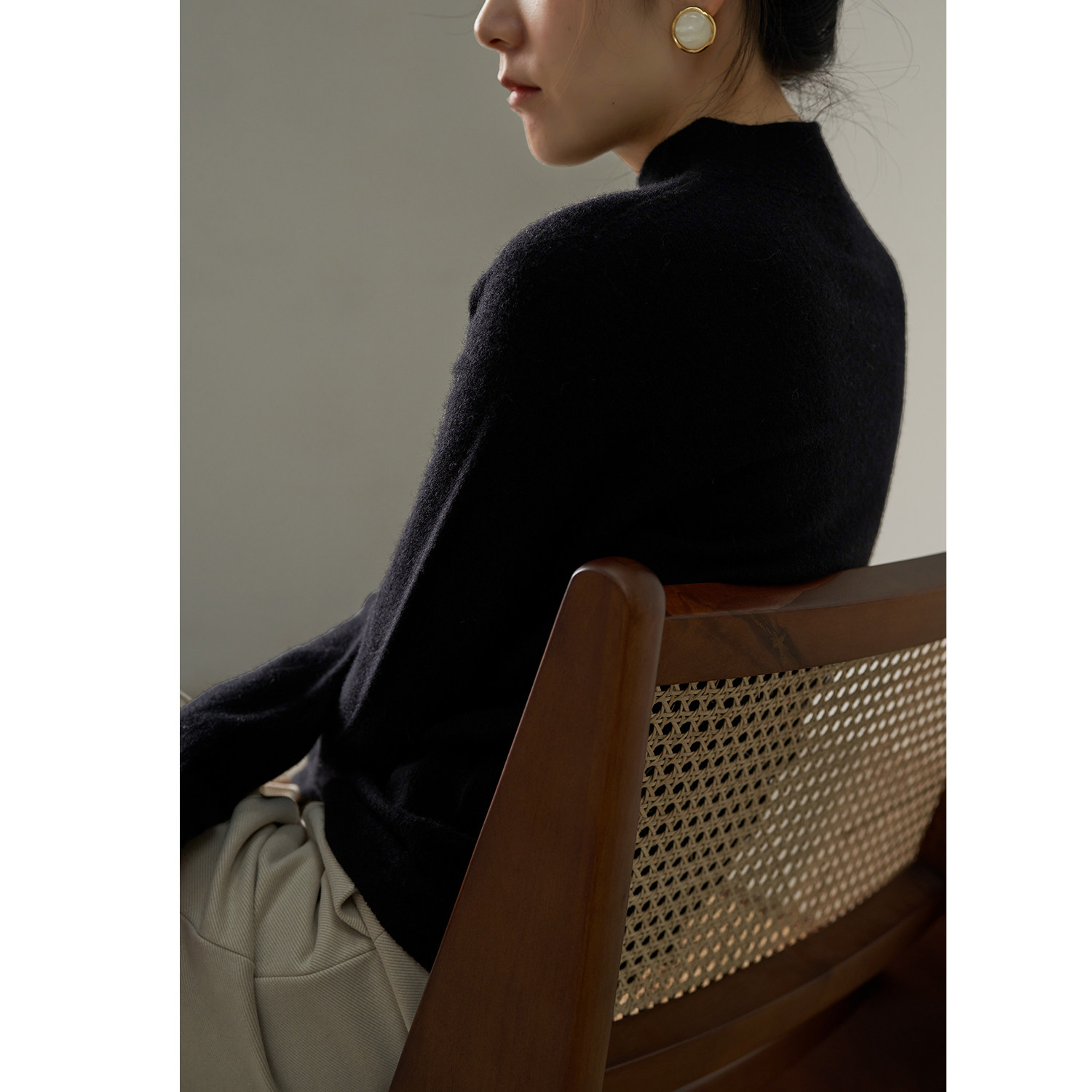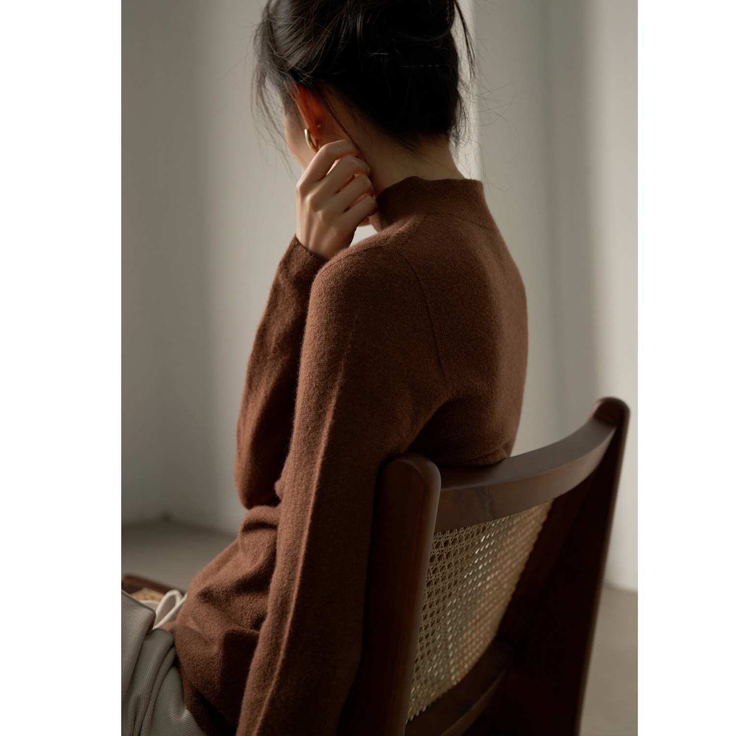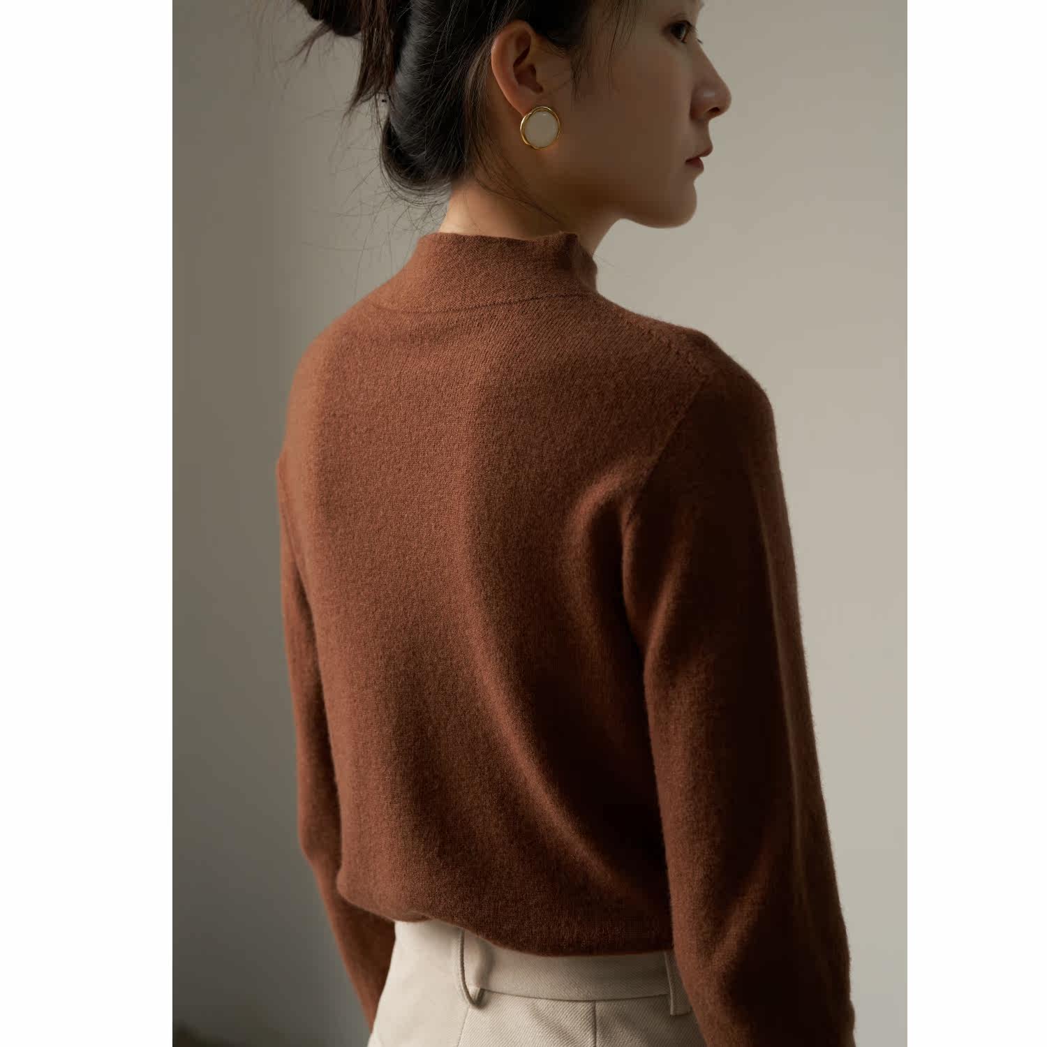 SS STUDIO First line of garment Tsuen wool high collar needlework