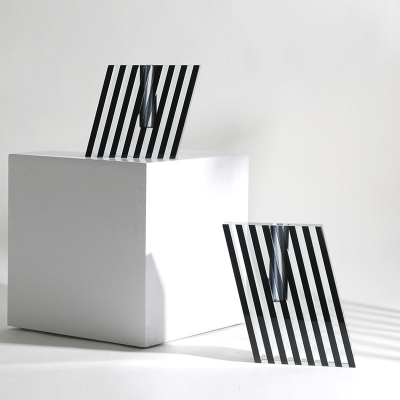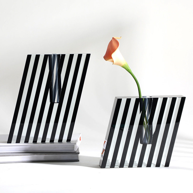 Modern European-style creative model house sales department square black striped crystal flower furniture home desktop vase decoration