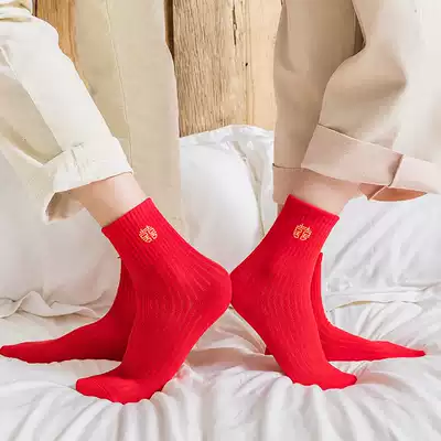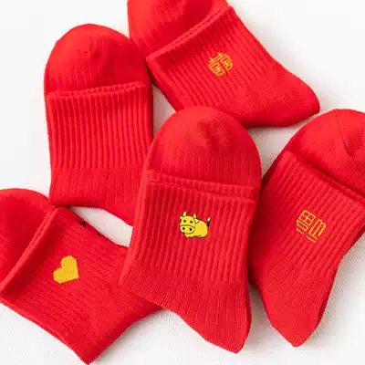 Big red socks men's pure cotton year of life stepping on the villain belongs to the year of the ox Big red socks women married couples celebrate the year of the ox