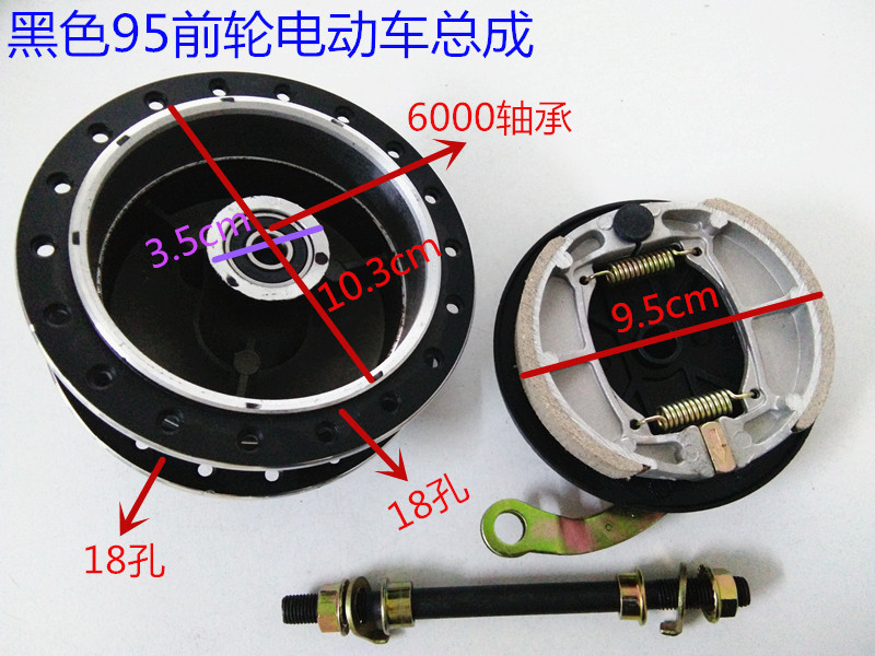 Electric bike front wheel brake assembly 36 hole spoke wheel front flower drum aluminium alloy housing bearing drum brake set