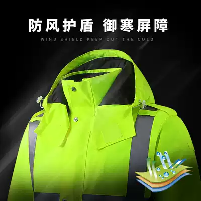 Reflective cotton coat Men's reflective raincoat winter thickened traffic safety cotton suit fluorescent jacket road cold suit coat