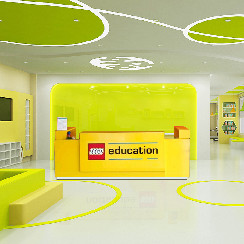 Lego reception desk early education center kindergarten training and education institution bar art center paint consultation