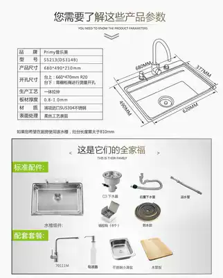 Puri DS314B(Primy)SUS304 kitchen stainless steel sink single sink with small sliding Basin