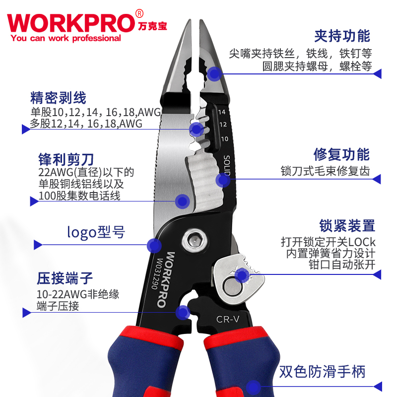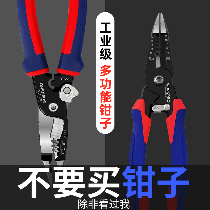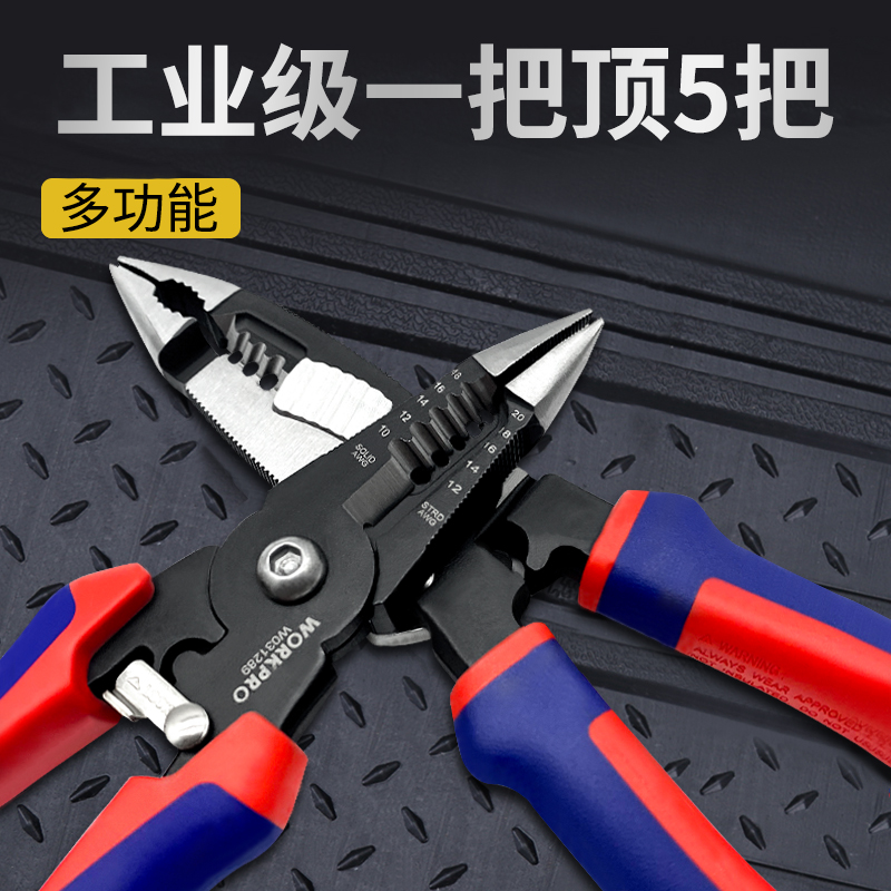 Wankebao industrial grade 5 in 1 multi-functional imported electrician pliers hand pliers stripping pliers wire cutting pliers needle nose pliers crimping pliers