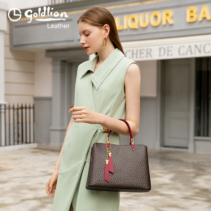 Goldlion women's bag 2022 trendy handbag large-capacity mother bag retro old flower hand bag dual-purpose messenger bag